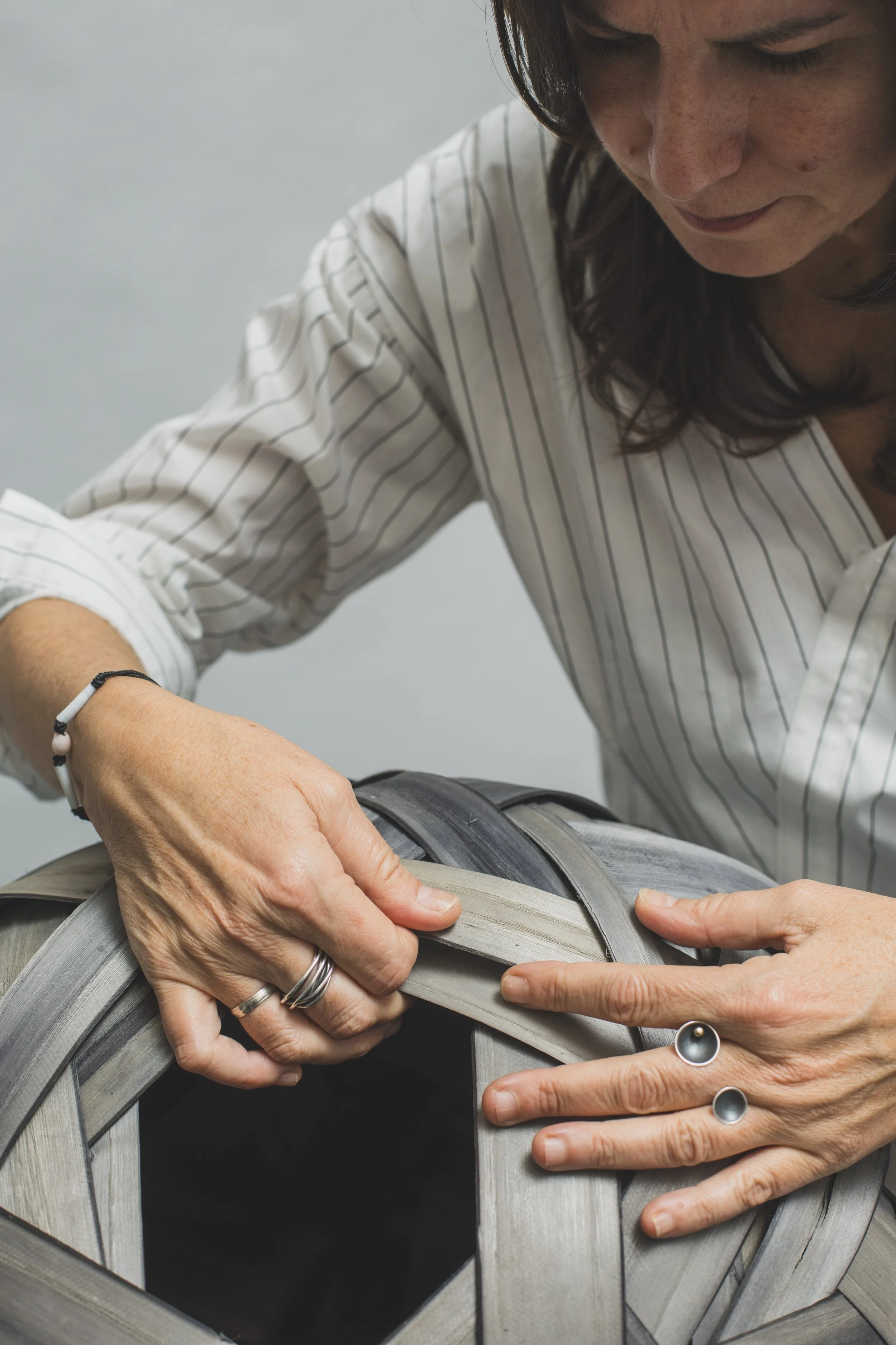For Cuesta, weaving is not a matter of following patterns but of entering into dialogue with material. Chestnut, willow, wool and other fibres are never neutral resources; each carries an identity — the resilience of the tree it comes from, the rhythm of its growth, the atmosphere of its landscape. “In my work, I am guided above all by the materials,” she says. “Their behaviour, their response when handled, and what they transmit through touch. I love to confront them and play with them as a way of expression.”