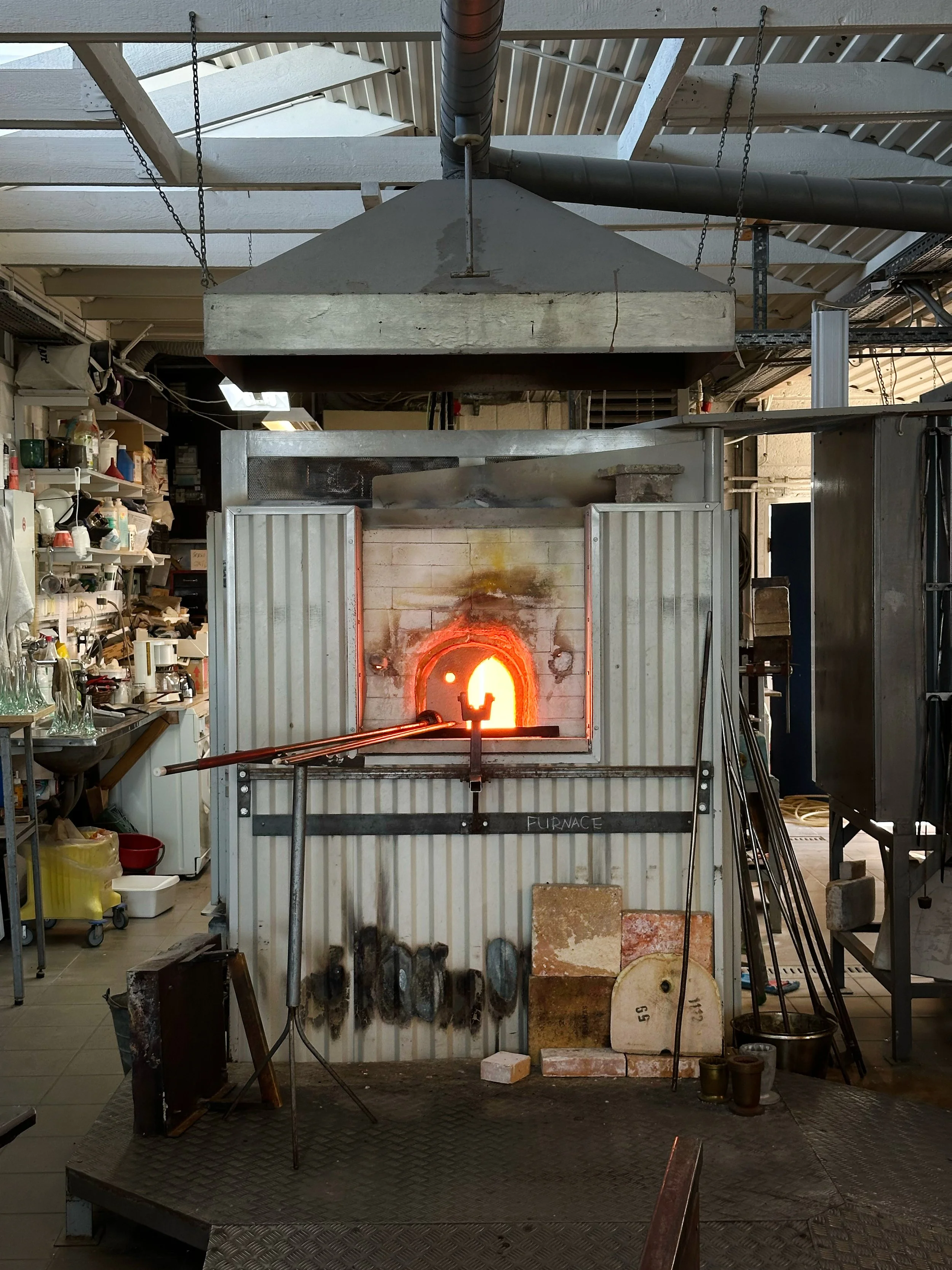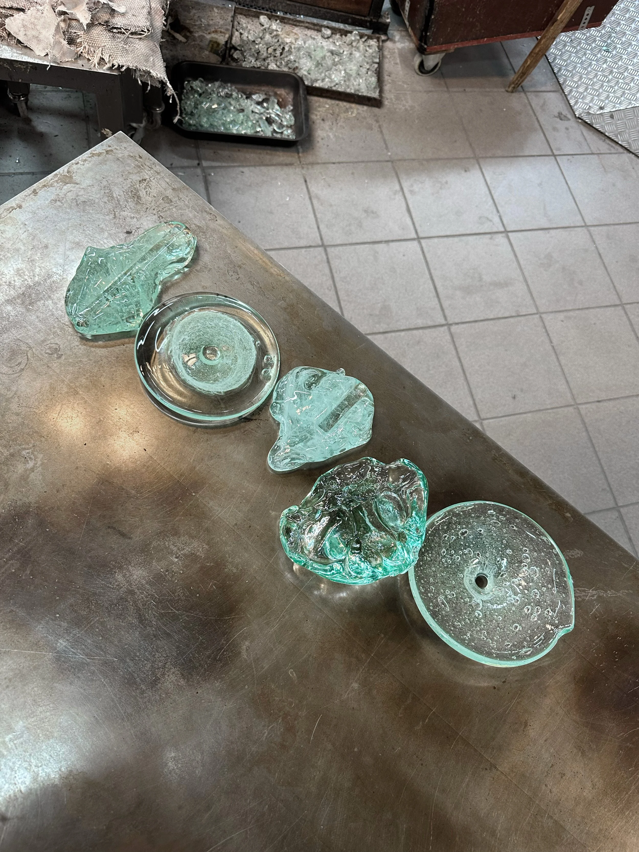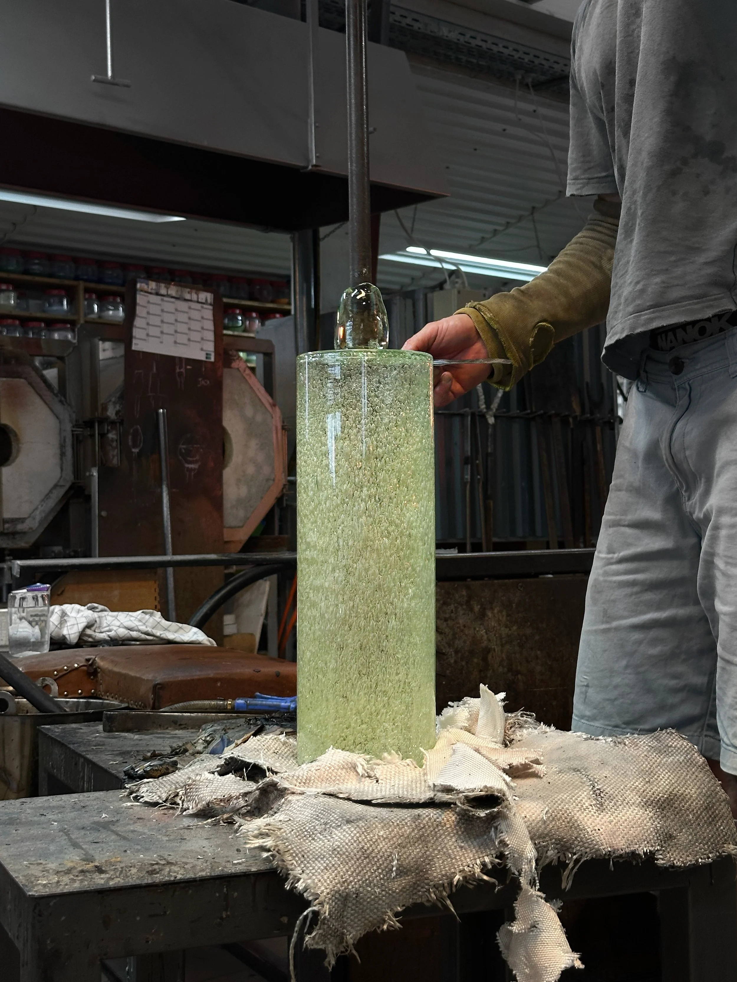 Each piece begins with cullet—shards of pre-consumer and industrial glass sourced locally—melted down and reshaped by hand. Inside the furnace, the material transforms back into liquid, becoming unpredictable and vibrant. Air enters, bubbles form, and textures shift in the heat. Rather than resisting these irregularities, Seelemann embraces them. Subtle distortions, shifting transparencies, and delicate inclusions become notes in a larger composition—evidence of the dialogue between craftsmanship and material behaviour.