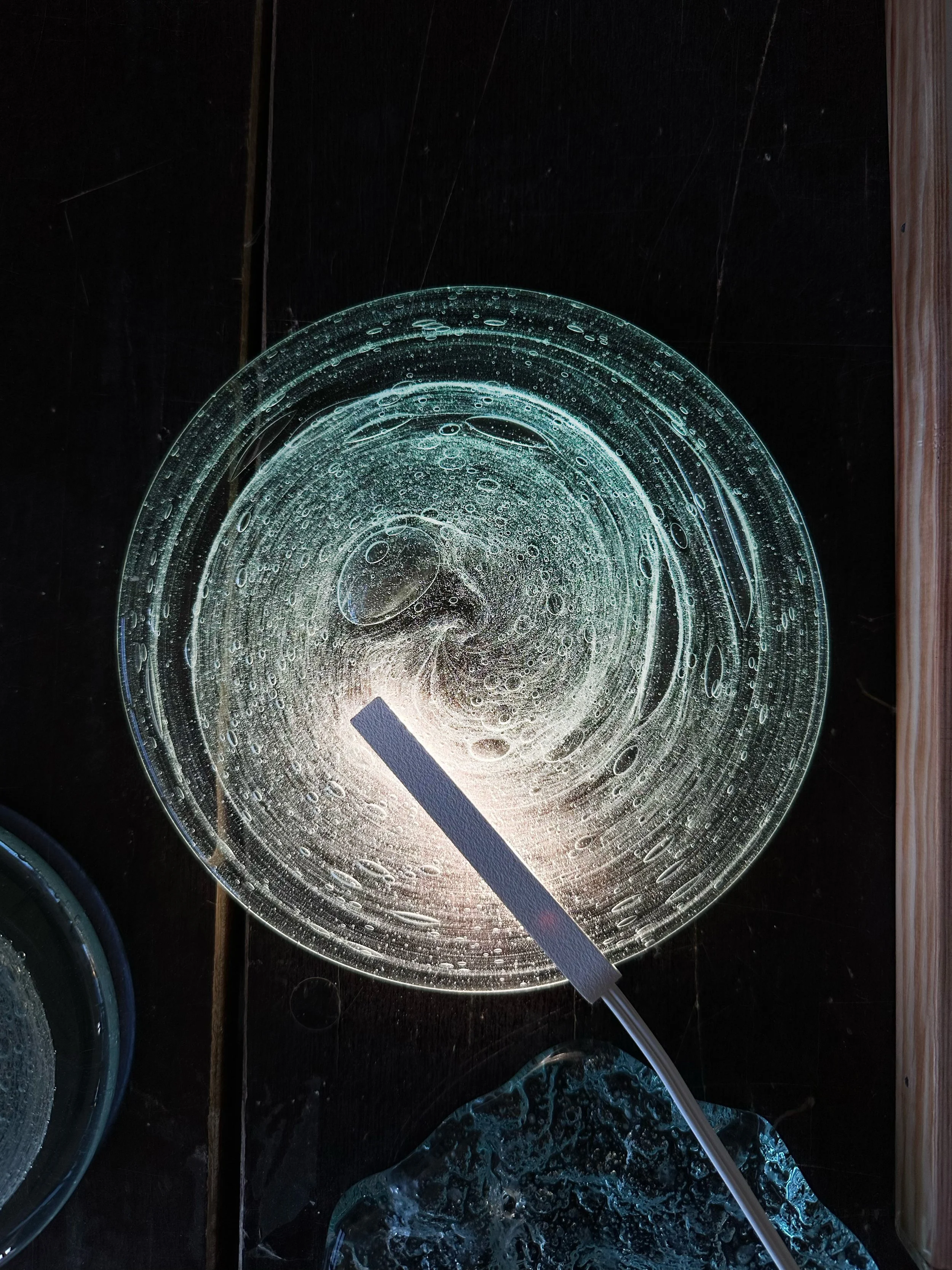 Vitrum approaches glass in a way similar to how a jazz musician interprets a melody—starting with something recognisable and then bending, stretching, and improvising until a new harmony emerges. Designer Johanna Seelemann doesn't attempt to silence the glass; instead, she listens attentively to its unique qualities, responding intuitively to every shimmer and crack. The result is a conversation between the creator and the material—spontaneous, fluid, and full of surprises.